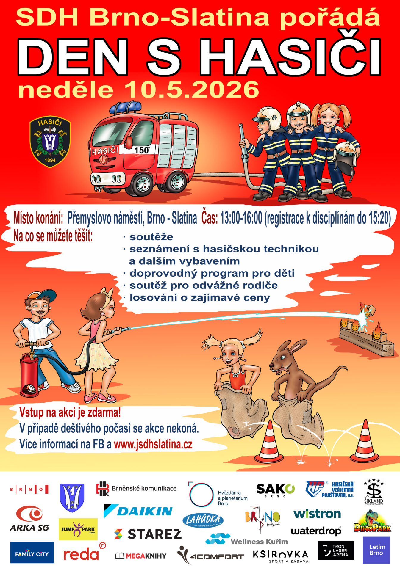 Sbor dobrovolných hasičů Brno-Slatina Vás srdečně zve na DEN S HASIČI. Akce se koná v neděli 10. května 2025 od 13:00-16:00 (registrace k disciplínám bude možná do 15:20) na Přemyslově náměstí v Brně – Slatině. Bude pro Vás nachystaný pestrý program: Zájemci se budou...